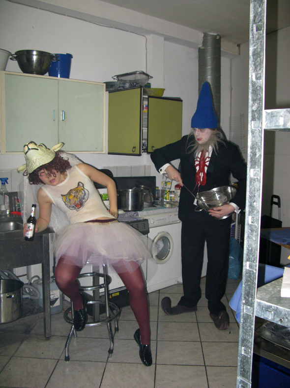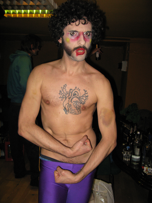Friday night’s after party was this really terrific band called Bonaparte. My friend and client Loulou was one of the performers. I did his heart tattoo. Here’s a few backstage photos.