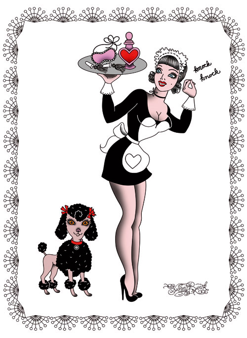 I’ve done quite a few illustrations for a cute little shop called Mimi A La Mode on Melrose in Los Angeles. Mimi sells cute shower caps, she believes that a girl can be glamorous even in the bathroom!