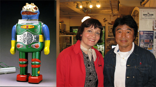 Here he is in his original state. Plus a photo of me with Teruhisa Kitahara the owner of Toys Club and the Tin Toy Museum in Yokohama. His book Robots and Spaceships is available through Taschen.