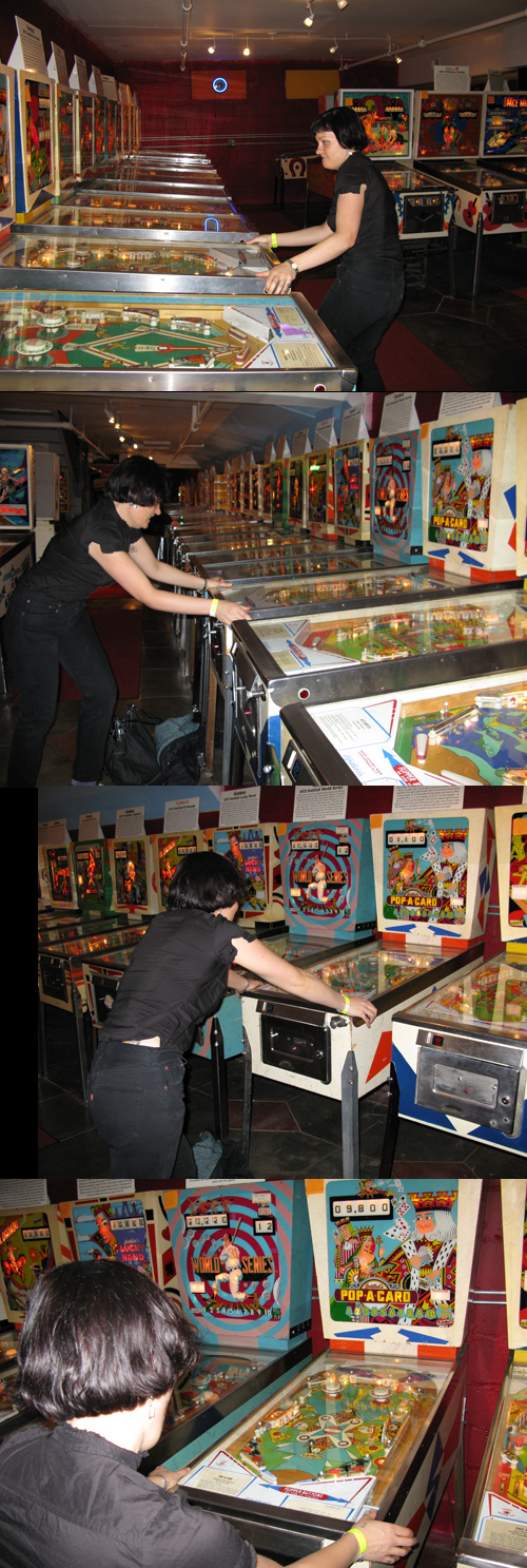 OK no pictures of the tattoos I did yesterday because I gave my USB cord to Binky to fill up my MP3 player with groovy music. But me and Jason went to this pinball museum after his session. It was soooooo much fun! I’ll show you my photos tomorrow.