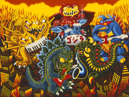Every Idea Comes From Somewhere by Sunny | Nov 5, 2009 | Books, Godzilla, Painting | 0 comments When I saw this photo of a Godzilla/Kaiju monster plushie rock band, I knew I had to paint it! You can find lots of great collectables like these in An Unautorised Guide to Godzilla Collectables by Sean Linkenback Schiffer Books. Submit a Comment Cancel replyYour email address will not be published. Required fields are marked *Comment * Name * Email * Website