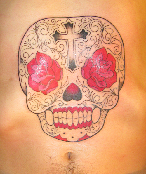 I finished up this traditional sugar skull tattoo yesterday. It was a pretty enjoyable experience considering that the stomach is such a hard place to tattoo.