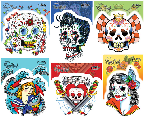 Especially loving the be-quiffed style Elvis skull. Aces!