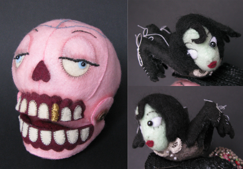 Remember I said I would show you the other things that Amanda made for me? The pink skull just cracks me up and the little spider lady I wear pinned to my hat. She’s sweet!