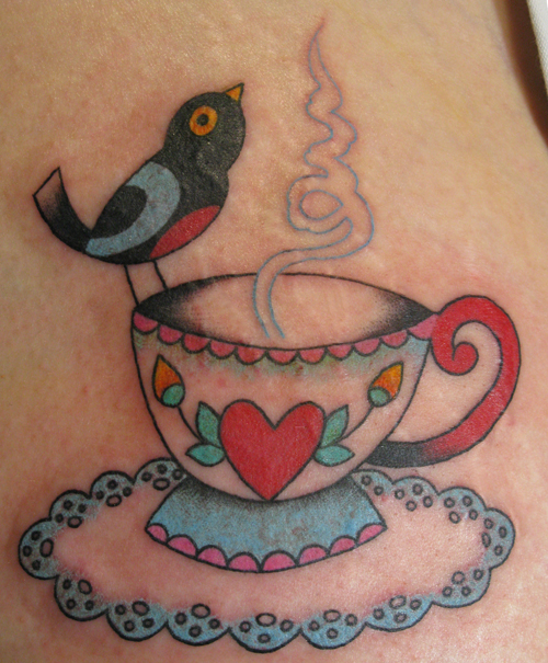 If you don’t already know it, you’re going to love this blog The Vintage Vivant It’s one of the great things about the internet, meeting people just like you, interested in the same things that live in all the far flung corners of the earth. Amelia comes all the way from Austin Texas and was visiting Paris on her spring break. I’m so glad she wanted to meet me and tickled that she wanted a tattoo as well. We had a very pleasant afternoon, stopping by La Grand Epicerie for items for our picnic, followed by tea and picnicking at my shop and then an easy and relaxed tattoo session. She got an adorable tea cup tattoo. And she is! Her card even reads, “I came, I saw, I was adorable”. Love!