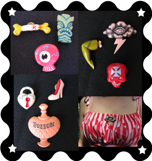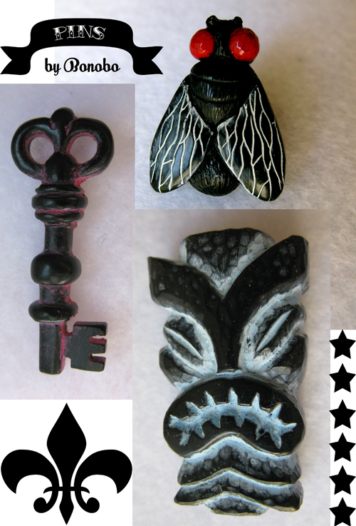 I have this collection of resin pins made by my friend Chris Bonobo. All the cool french kids have one. Go see more at http://www.myspace.com/chrisbonobo