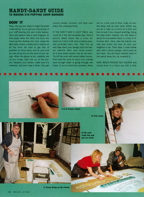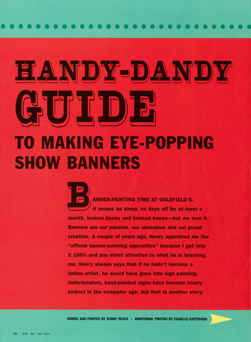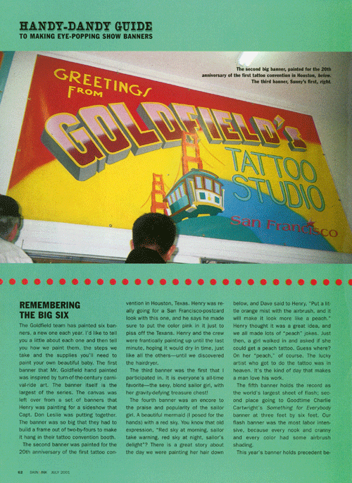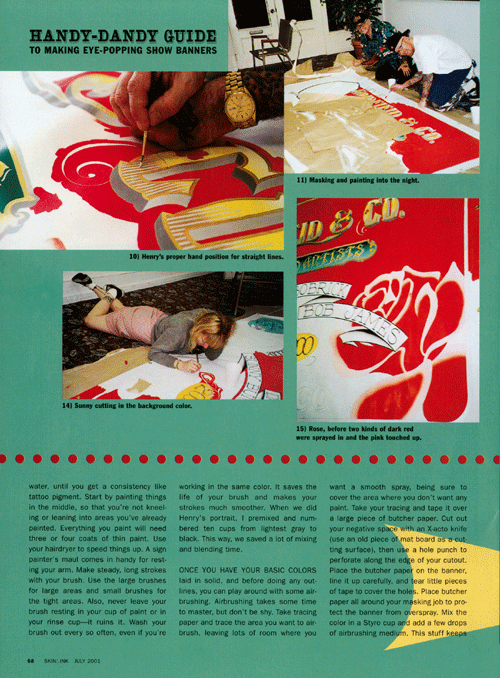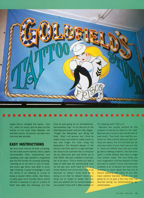 I once wrote an article for Skin and Ink tattoo magazine about how to paint banners. At Goldfield’s we painted a new one every year.