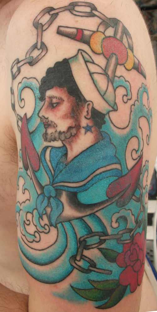 Handsome Sailor by Sunny | Jul 31, 2011 | Tattoos | 3 comments Here’s the piece I was telling you about. I used some old Christian Warlick Flash for inspiration. Thanks Emilie for taking the pictures! 3 Comments Andi B. Goode on July 31, 2011 at 3:45 pm Oh wow. I REALLY love this piece. -Andi x Reply virani on August 2, 2011 at 6:04 pm Really nice ! Love it ! Bravo Sunny ! Reply Jujupiter on August 9, 2011 at 2:09 pm Yeah, thank you Sunny, I love my tattoo!!! Julien. Reply Submit a Comment Cancel replyYour email address will not be published. Required fields are marked *Comment * Name * Email * Website