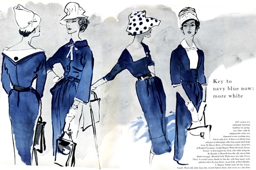 Navy Blue Vogue by Sunny | Aug 31, 2011 | Fashion | 0 comments I scanned and fixed up this image from a 1950’s Vogue. I’ve been crazy about blue and indigo lately. I’m always on the lookout for unusual denim items. I really love the hats in this illustration. Submit a Comment Cancel replyYour email address will not be published. Required fields are marked *Comment * Name * Email * Website