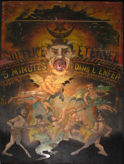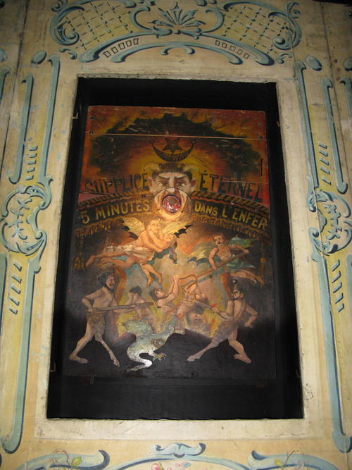 Readers familiar with my tastes and obsessions will know of my love for circus ephermia and imagery. For me the fête foraine is an extension of circus. The european version of the traveling carnival. However the decorations are more refined. Next to these antiques american side show poster artists seem extremely amateur.