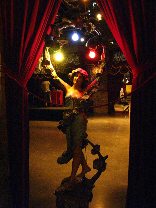 The MAF is the collection of one man: Jean Paul Favand actor and antique dealer. He started this repository in the ‘70’s and ‘80’s before people realised the value for these objects. He brings his theatrical background to make the museum into a dazzling living fantasy. The collection is located at Les Pavillons de Bercy, huge old wine wharehouses, about 5000 square meters, separated into 7 large rooms. The faded relics are thoughtfully installed in stone walled buildings which make an enchanting antiquated atmosphere. It makes one imagine oneself in a castle or a medieval setting. The backdrop of stone captures the lighting and creates a sparkling twinkle that adds to the magic tableau.