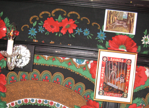 Fringed shawls, scarves, a chinese lantern, beads and chains that curtained the entry, all the charms of the gypsy enchantress.