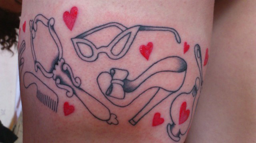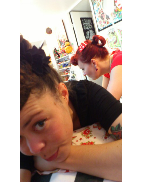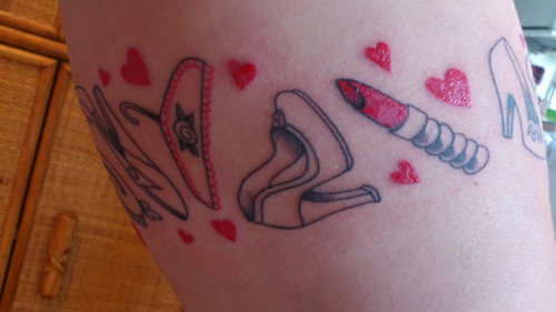 Fanny came to get tattooed and she did a little photo report and sent me the images. We sure had fun that day! The tattoo goes around her upper thigh. It’s not finished yet, although it does look good red and black. There will be lots of colors, it was just too much to stand in one session.