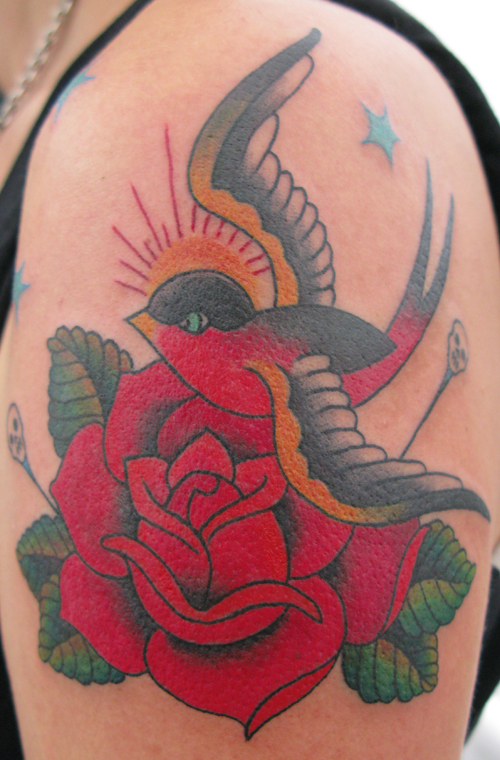 Rose and Saintly Swallow with Skull Picks by Sunny | Oct 8, 2012 | Tattoos | 0 comments Nice collaboration with an artist client, all her ideas. Submit a Comment Cancel replyYour email address will not be published. Required fields are marked *Comment * Name * Email * Website
