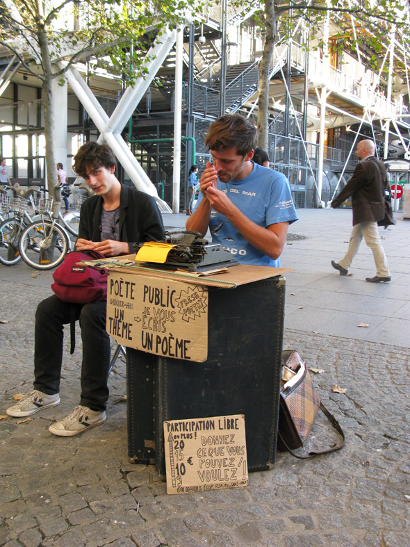End of summer, back to school and the autumn approaching create desires to write, read or see an amazing film. We went twice to the Pompidou museum to see films in a series of Shirley Clarke. I saw this beatnik in the streets offering a poem on the spot. Reminds me of San Francisco. We saw The Cool World and The Connection. So good.