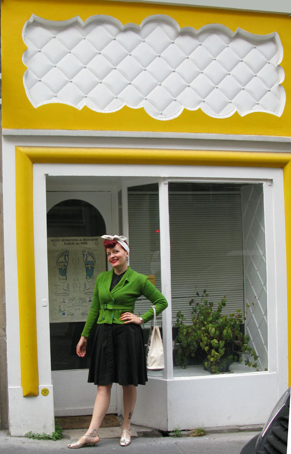I’ve been inspired to start documenting sartorial posts again. I hope you’ll bear with me while I obsess about vintage clothes! I was in the neighborhood above the Arc de Triomphe the other day and I found this beautiful store front which was perfect for a little photo shoot.