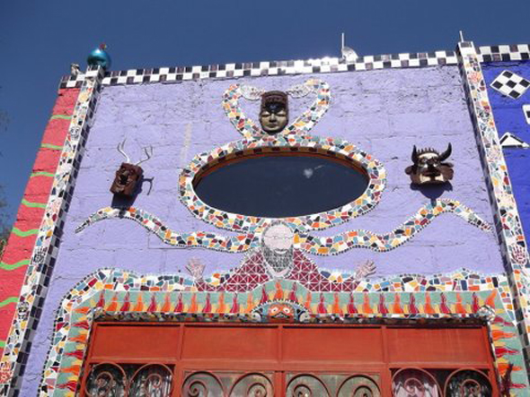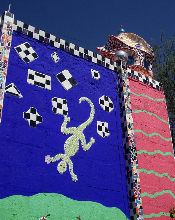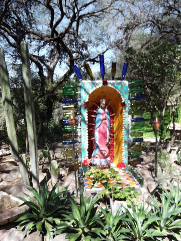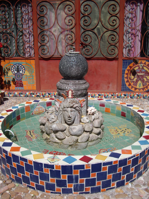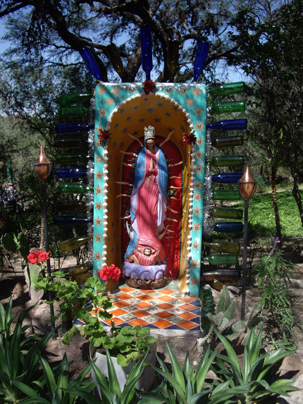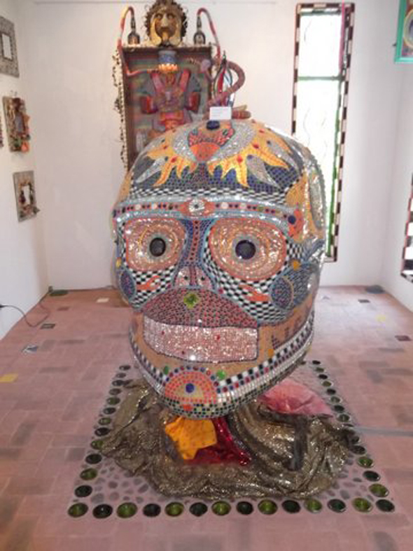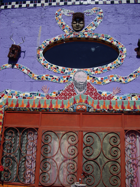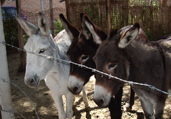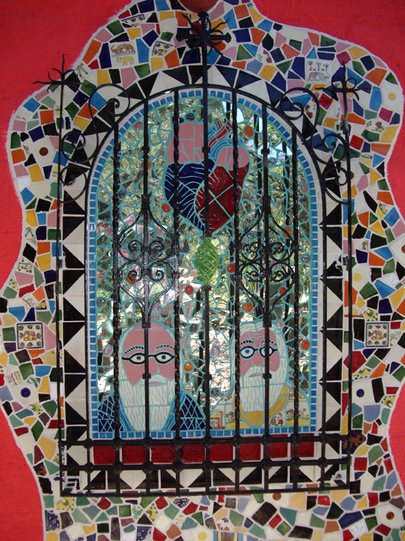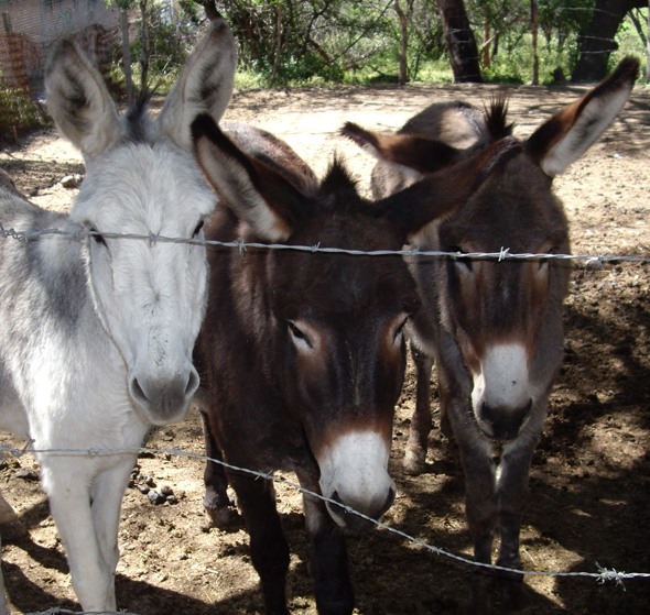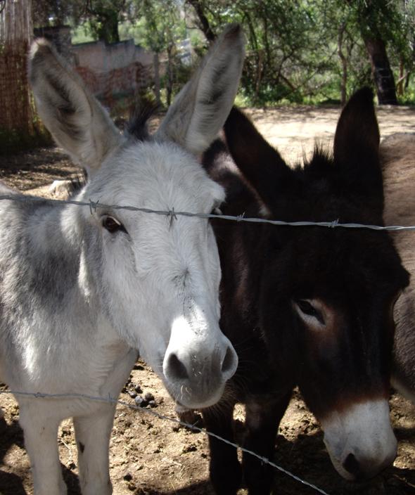 And some photos from an art gallery opening of Anado, a friend of my mom’s who lives in a country village not far from San Miguel. Gay hippy Santas, mosaic and donkeys!