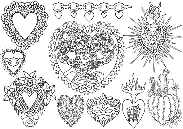 Milagros are mexican embossed tin hearts that are hung in the home or on an altar. They serve to ask God for a miracle, or show gratitude for one that has been granted. I especially identify with the miraculous heart, it’s the perfect symbol for what I am feeling, or more precisely a denial of what I am feeling. Alternatively, a desire to feel something else. A self-prescribed form of therapy, after what seemed like a year filled with tragedies.