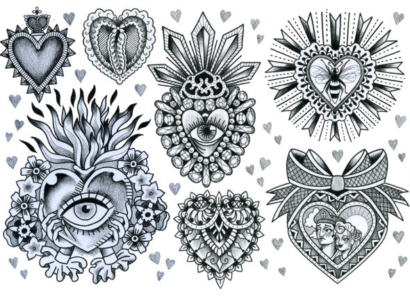 Firstly, I start with a fixed idea and see where it goes, discovering with excitation the unexpected, the unknown. Choosing the detail to pay attention to and then finding it everywhere. Each heart has a different story, illuminates another dark corner, like a candle lit séance.