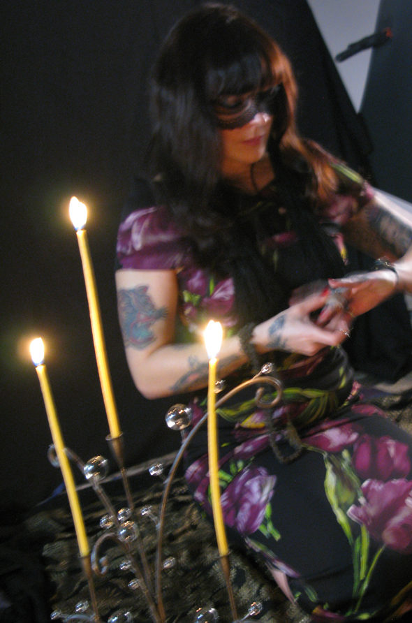 My friend Paola Hivelin was one of the creators and organisers of The Cabaret Organique, you may remember photos of me doing a performance art piece tattooing in a trailer. She is a painter and sculptor. For the show she made a deck of tarot cards from a series of paintings she did inspired by the major arcane of the tarot deck.
