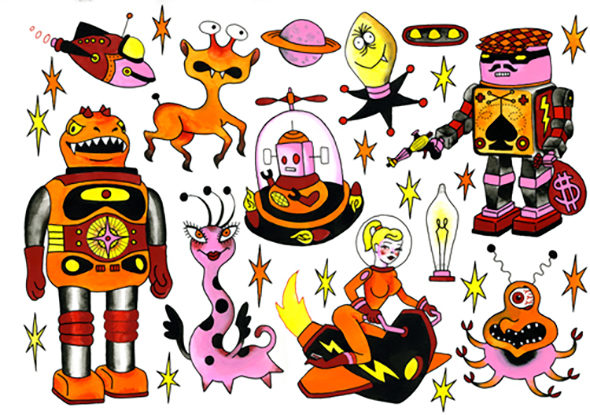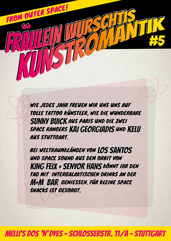 I’ll be in Stuttgart guest tattooing August 6th through the 12th. At my friend Melli’s new address for her hair salon, Dos ‘n’ Dyes. There is a big party on the 11th. Art, music, food, drink, and tattoos.