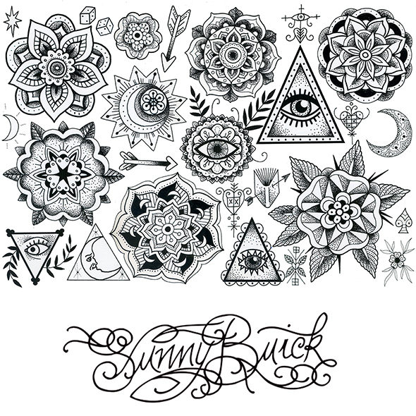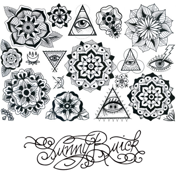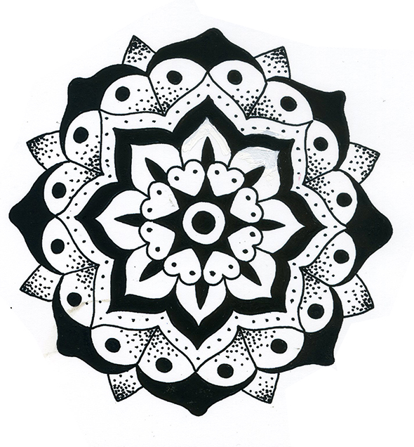 Mandala- is the tibetian word and symbol for circle. It can also be translated as sphere, environment, community, cosmos, or microcosmos. It is pricipally used for focus during meditation, as a spiritual guidance tool. A reminder of balance or what these things mean to you, or an offering. Sacred space. Used also to induce a trancelike state, which can be helpful when trying to shed all of our preconceived ideas and beliefs learned over a lifetime of bad influences from our environment and society. I’m not jumping on the tattoo bandwagon, 4 of these drawings I drew 20 years ago. That being said, I think a mandala tattoo is great portable meditation reminder and magic to boot!