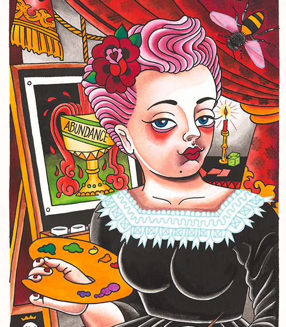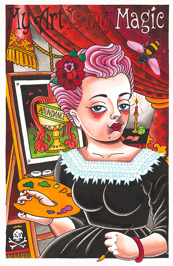In this year’s edition I made some portraits of my friends in Gang of Witches. They are watercolor, inspired by some work I’ve done in the past. Portrait work is hard!!! It’s hard to capture all that you see in the person, also to make it ressemble them. There will be 13 in this series.