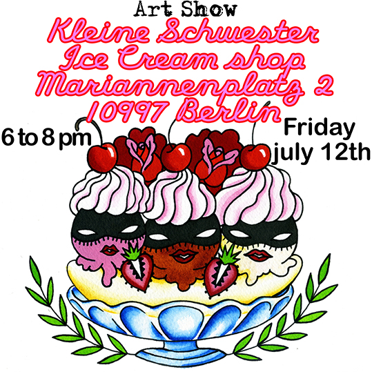 I went to Berlin to visit a dear friend, that I hadn’t seen in many years. I also had a few days of work at Taiko Gallery, tattooing with Guen Douglas. Next door to the tattoo shop was the cutest little gallery and atelier of the artist, Johan Potma. The Cheese Mountain Tradgey