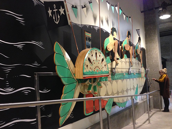 Installations: He made a giant wooden steamboat/whale for Facebook’s Seattle offices,