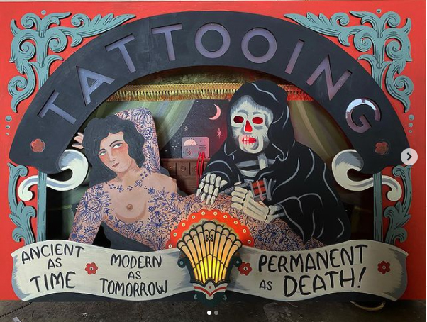 I’ve been talking and writing lately about wanting to make a transformation in my career. For 28 years now, I’ve been making a living as a tattoo artist and a lot of people see me only as that. But I do so much more! I paint, write, make objects, videos, do performances, and I want to eventually create installations and immersive experiences. I want to transform, I want people to see my potential as a multi-disciplinary artist. I want to be showing in museums, public art spaces & site-specific art spaces. Making installations and immersive theater and/or VR. I want to give lectures or participate in conferences at Universities, about the history of tattooing, my journey, and underground art movements. Another ambition is to push myself as far as I possibly can as an artist, to explore deeper waters. Here’s some tattoo artists that I feel are the epitome of what I envision as a person who is a multi-dimensional artist: