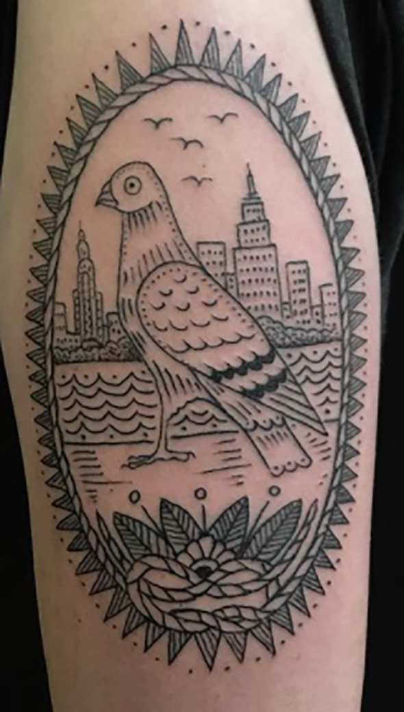What do New Yorkers do as pastimes? Obsess about rats, pigeons and bedbugs. Pigeon training is both New York and military. How can we show that tattooing is and should be considered a real art? Maybe he has an obsession with the history of the whole business. Maybe Riley started imagining the sailor’s stories, how they fit into the American myth of adventure and exploration. Re-valorizing ancient practices by performing modern rituals.