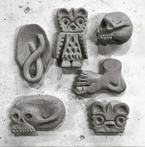 Shrewsbury has abandoned tattooing for the time being to give more room to pure exploration. Lately, he has been making a lot of ceramics (always decorated with tattoo motifs),