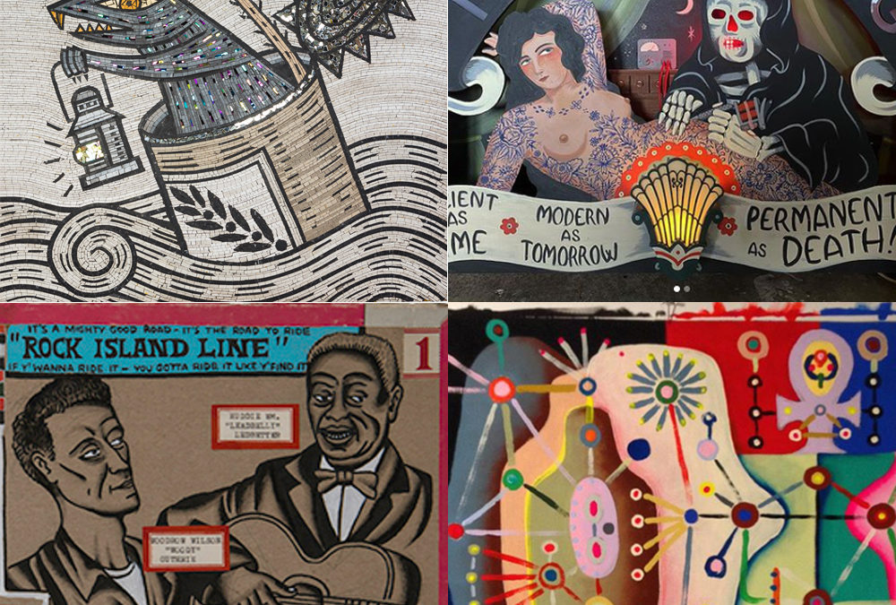 As Riley represents New England, Martz represents the Pacific North West. He also uses nautical themes in his art. With an obsession with tinkering and craft. Inspired by children’s book illustration, sign painting, vintage graphics and logos, his art is populated by sailors, mermaids, sea animals, and port towns.