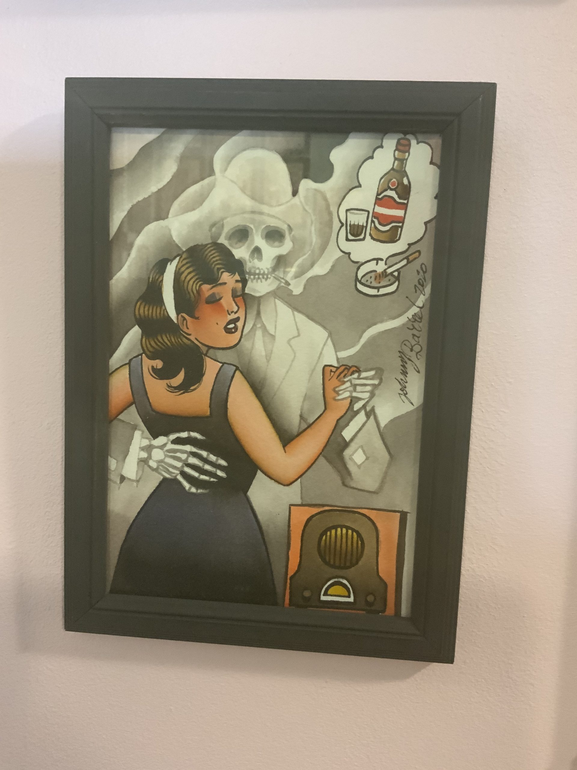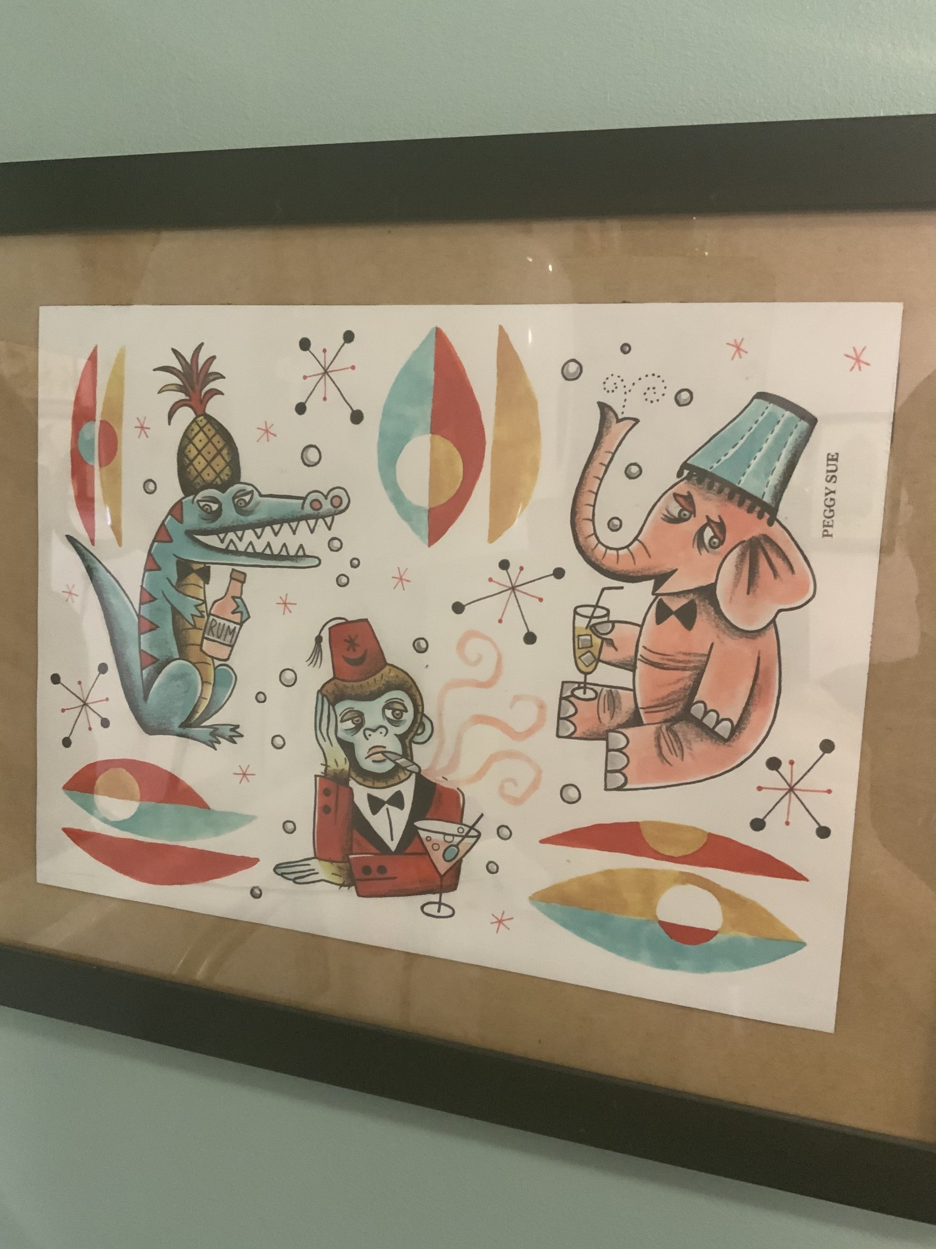 We did a trade a few years ago and here’s my painting hanging in her shop: