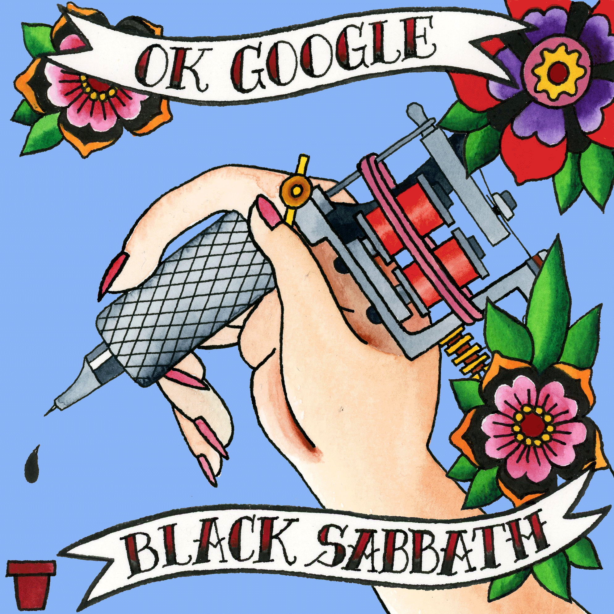 One day Chloé was getting ready to tattoo and I heard her say “OK Google, Black Sabbath” it made me laugh so hard! Every tattoo shop should have a sign that says this: