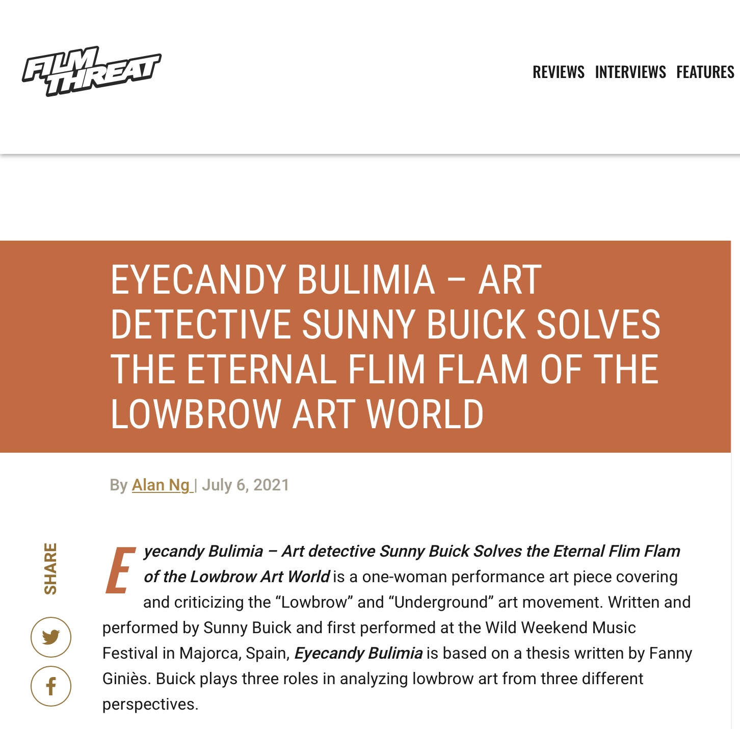 Do you know about Film Threat? It’s a Uber cool website that reviews underground and independent films. They also have articles you must check out like « 6 Indie Films you must watch before you die » and « John Waters; Cinema Terrorist » . Why am I telling you about Film Threat? Well, they reviewed my very own underground/independent film « Eyecandy Bulimia ».