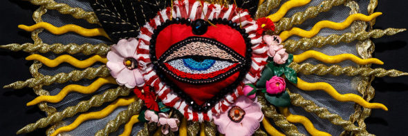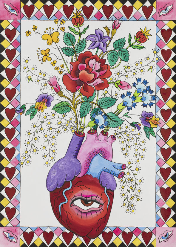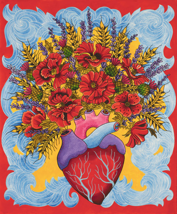 I wish I could tell you what pushed me to dive right in and just start. With this piece, I had absolutely no ideas where it was going in the beginning, but I’m so happy with how it turned out. I started with the central shape. It was just a silhouette of one of my Milagros tattoo designs.