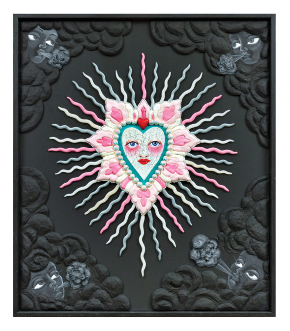 I think I was just assuming that I would paint it just like the design I did on paper. But maybe that idea didn’t excite me enough, so I started the sculpture part of the heart frame. I used an air drying clay.