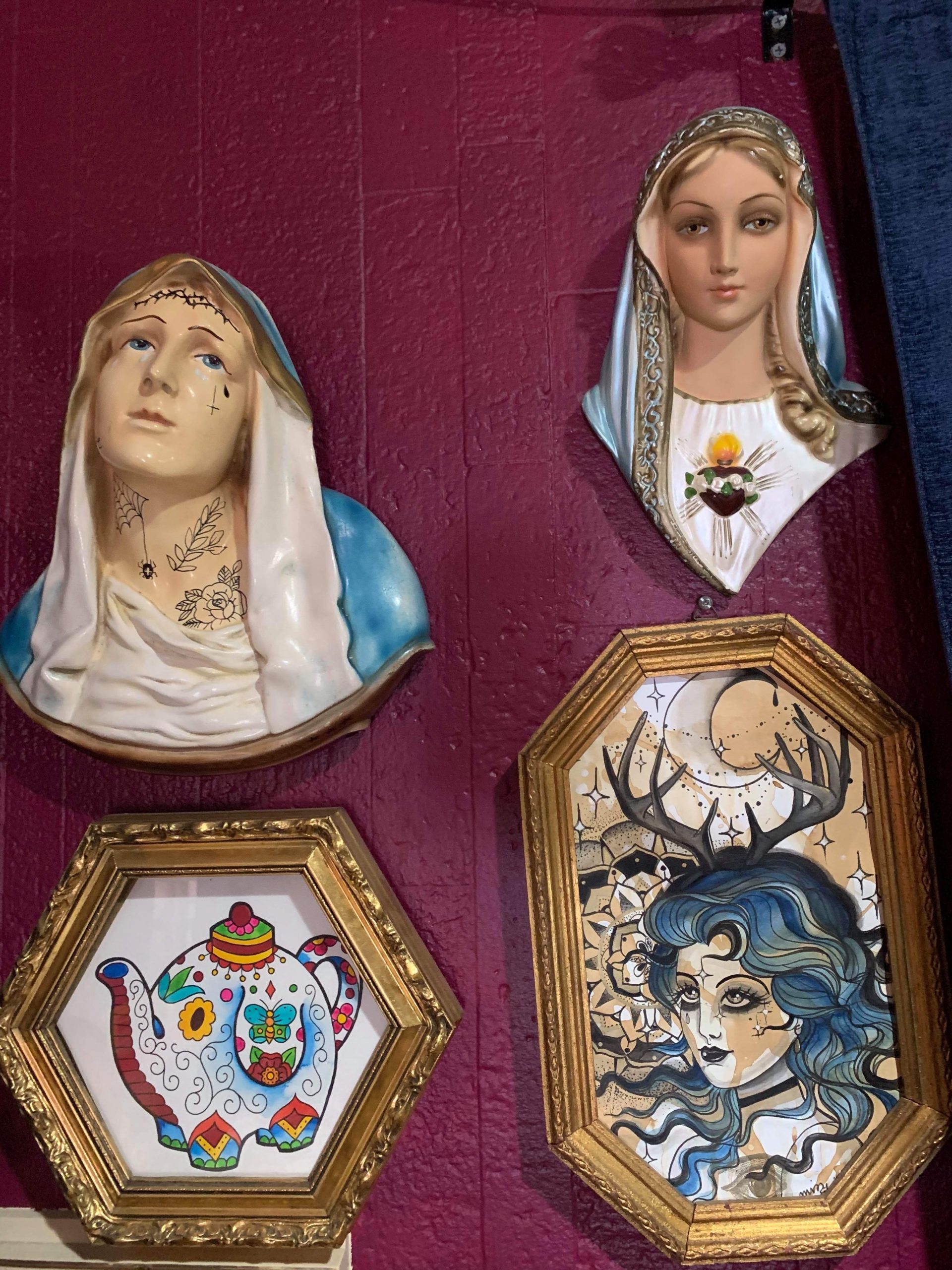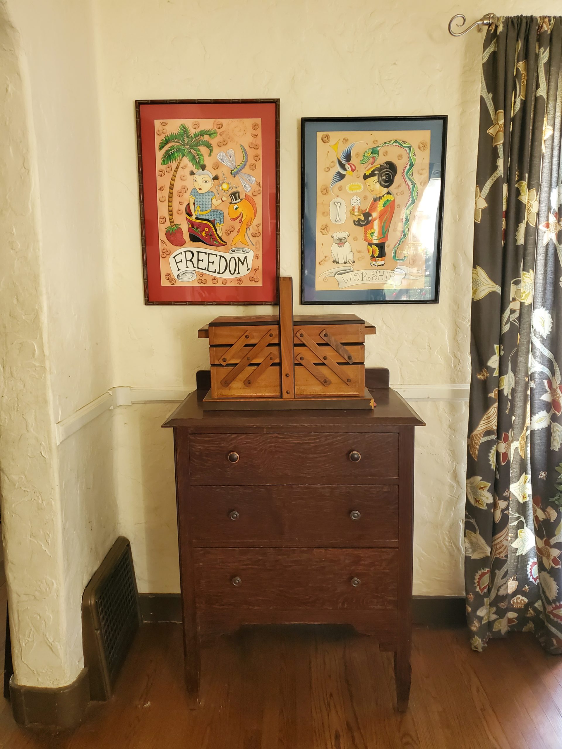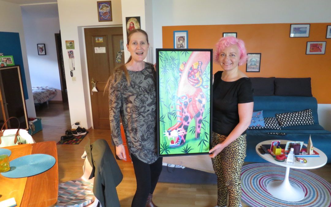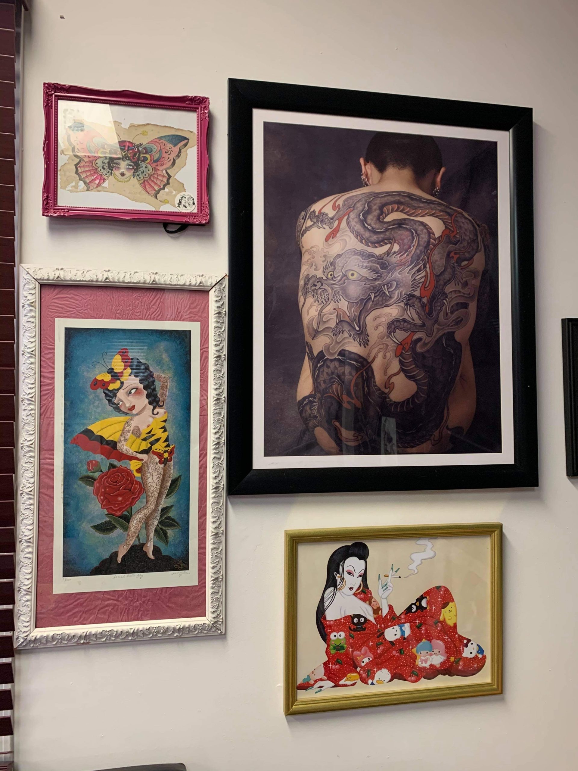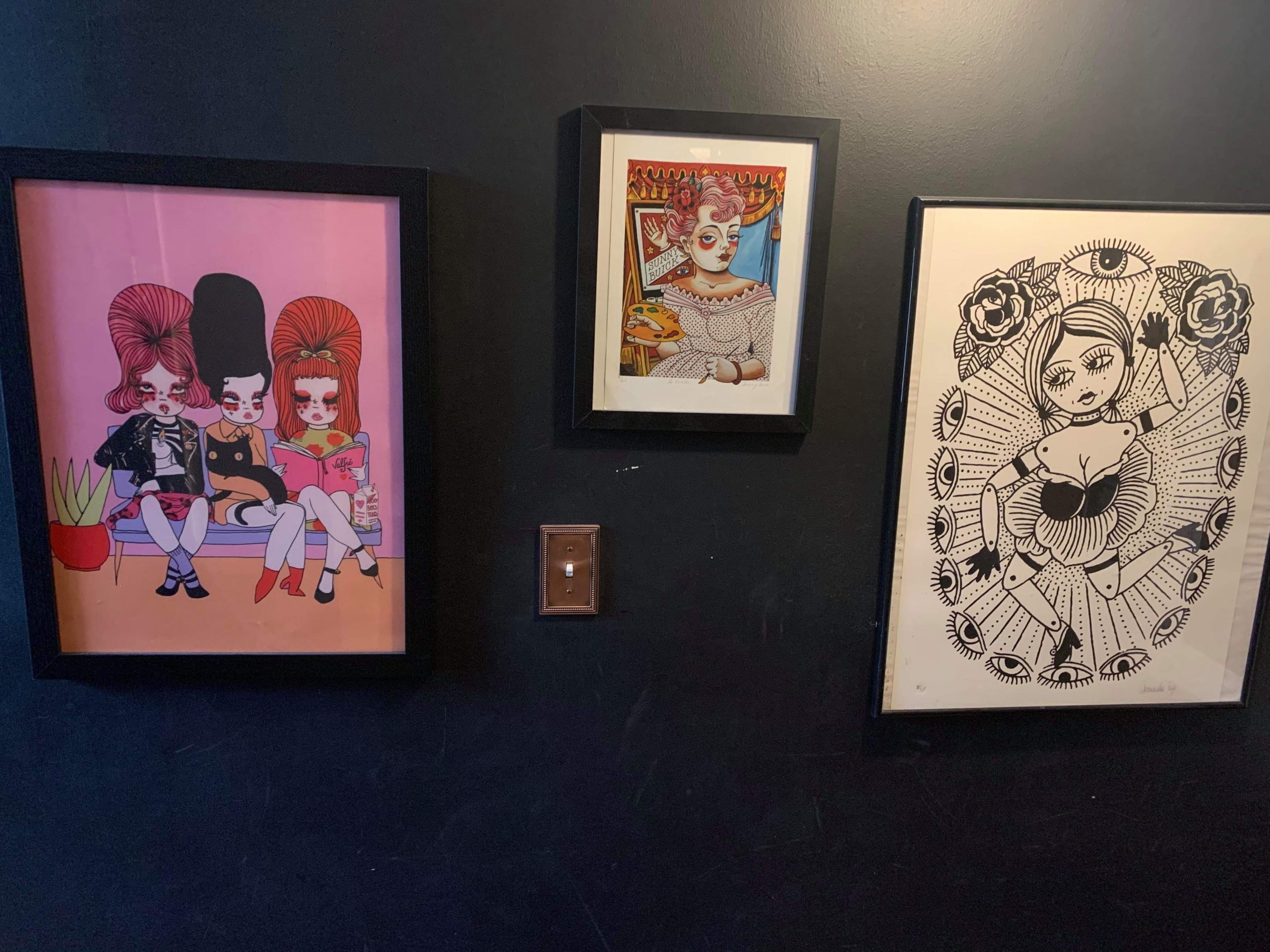 The little elephant painting and the «Illustration Self Portrait» and «Social Butterfly» prints are owned by very a very cool lady (also a tattoo artist) Elvia, who lives in New York City. She has a cool collection of art, don’t you think?