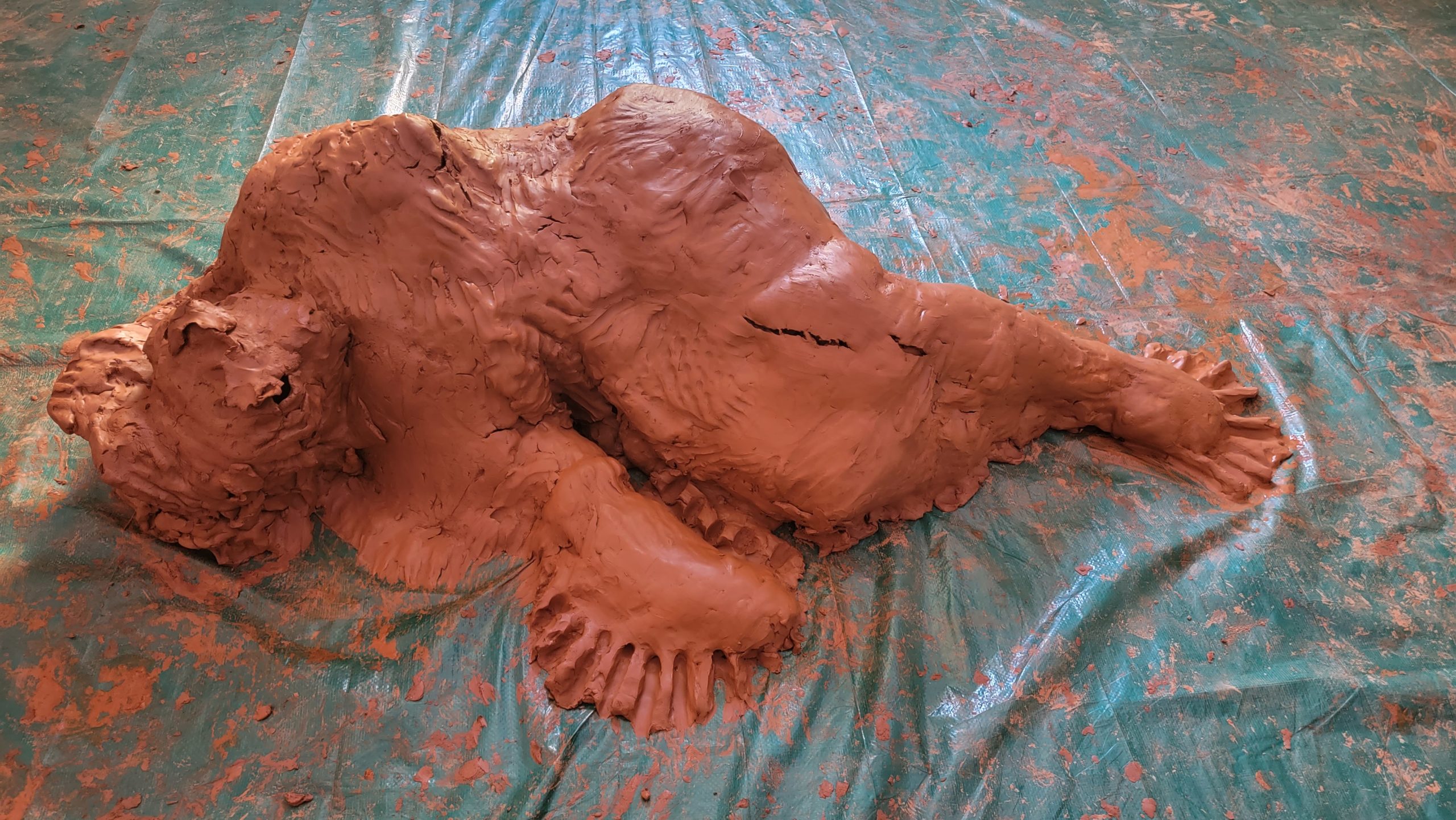 Peake ordered 80 kg of clay, first we “played” in the clay with our eyes closed, then we burried a body in clay.