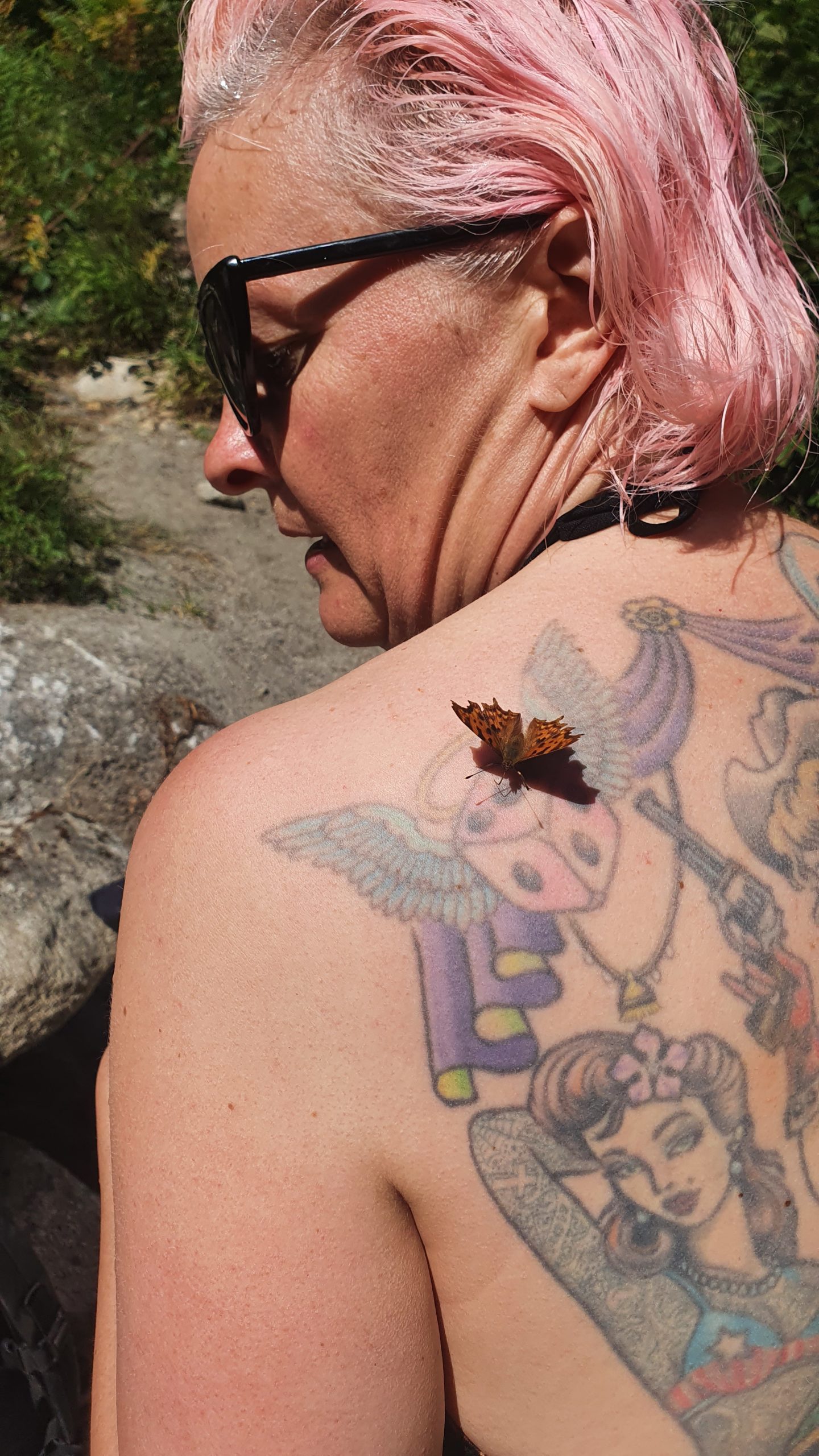 At the river, a butterfly decided to bless me for about 20 minutes. Maybe she was attracted by my tattoo! My imagination was on fire because the butterfly is such an important symbol in my work. Something about which I’ve written many things about, and an image that comes up in my work often.