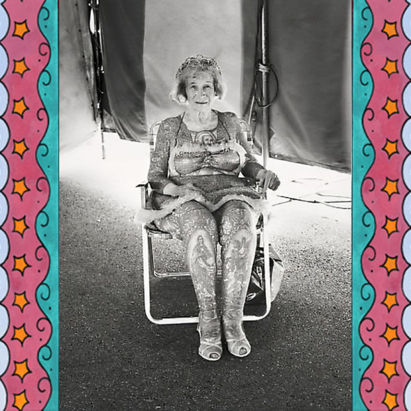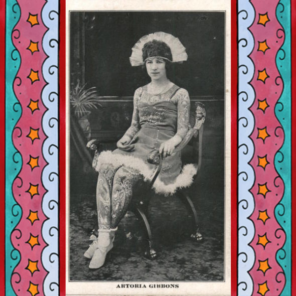 In the seventies her manager told a salacious story about how she was tattooed by her jealous husband, as a way to mark her as his and discourage other men from interest in her. ‘Artoria’ didn’t like this distortion of the facts, but it seems that her manager continued to sell this story regardless. This angers me to know that he would do this against her will. It must have been sad for her to hear him say those things about ‘Red’ Gibbons, the love of her life. But the circus was show business and sideshows were seedy places in the seventies. Her manager knew what story would bring in the customers. Many other tattooed lady performers in the past also used fabricated stories, to entice the public.