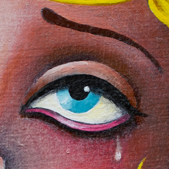 Let’s talk more about the Buddha eye. It remains half-open and half-closed in a meditative state, enabling it to perceive beyond material things. Sometimes, it is represented by a third eye. In Buddhist art there are the inner eyes of wisdom and material eyes that perceive the external world. Eyes can «see» the truth or the presence of greed, hatred, and ignorance. Seeing is another way to say awareness.