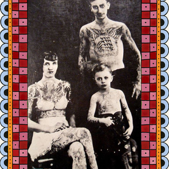 In 1936, she had a run-in with the law for theft, which was documented in a police record that also referenced her tattoos. Among her notable connections was Bernard Kobel, a photographer from the mid-19th century who specialized in the unusual and the enigmatic, particularly women. His lens captured several images of Carroll, including some nude photographs and a picture of a tattooed family. Many suspect the tattoos on the little boy in the photo were fake. The man in the image might have been Carroll’s initial husband.