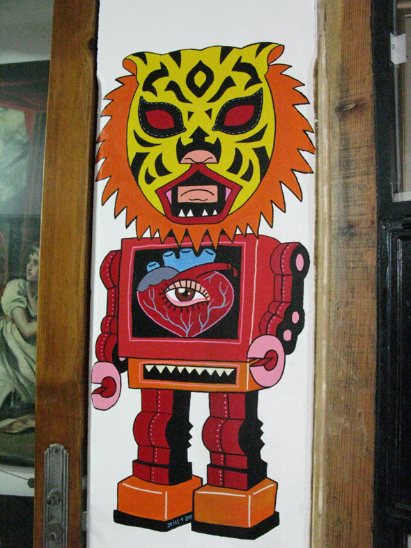 The distinct markings of the tiger could be seen as scars, or tattoos. It’s interesting how black and yellow stripes have been adopted as symbols to convey numerous messages, mostly warning signs; an eventual diversion, hazard or possible obstruction. Stripes mean Dangerous! Watch out! Beware! Detour! The symbolism of the tiger’s stripes, with their dual meaning of warning signs or traces of trauma, mirrors my own desire to inspire fear in order to overcome feelings of powerlessness.