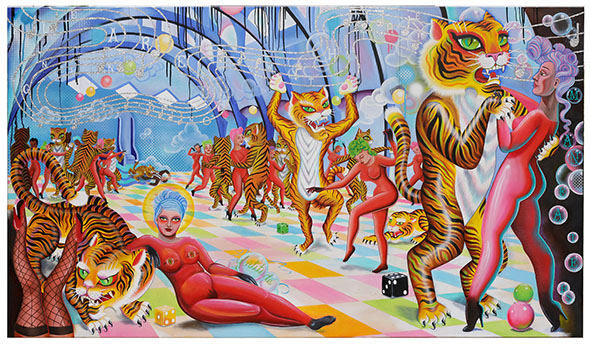 My artistic inspiration draws from literature such as Angela Carter’s “Nights at the Circus,” where women embrace their wild, feline instincts as a form of empowerment. Rejecting traditional roles and societal expectations, my paintings depict women learning from the untamed nature of tigers, forging their own paths and staging their own revolutions.