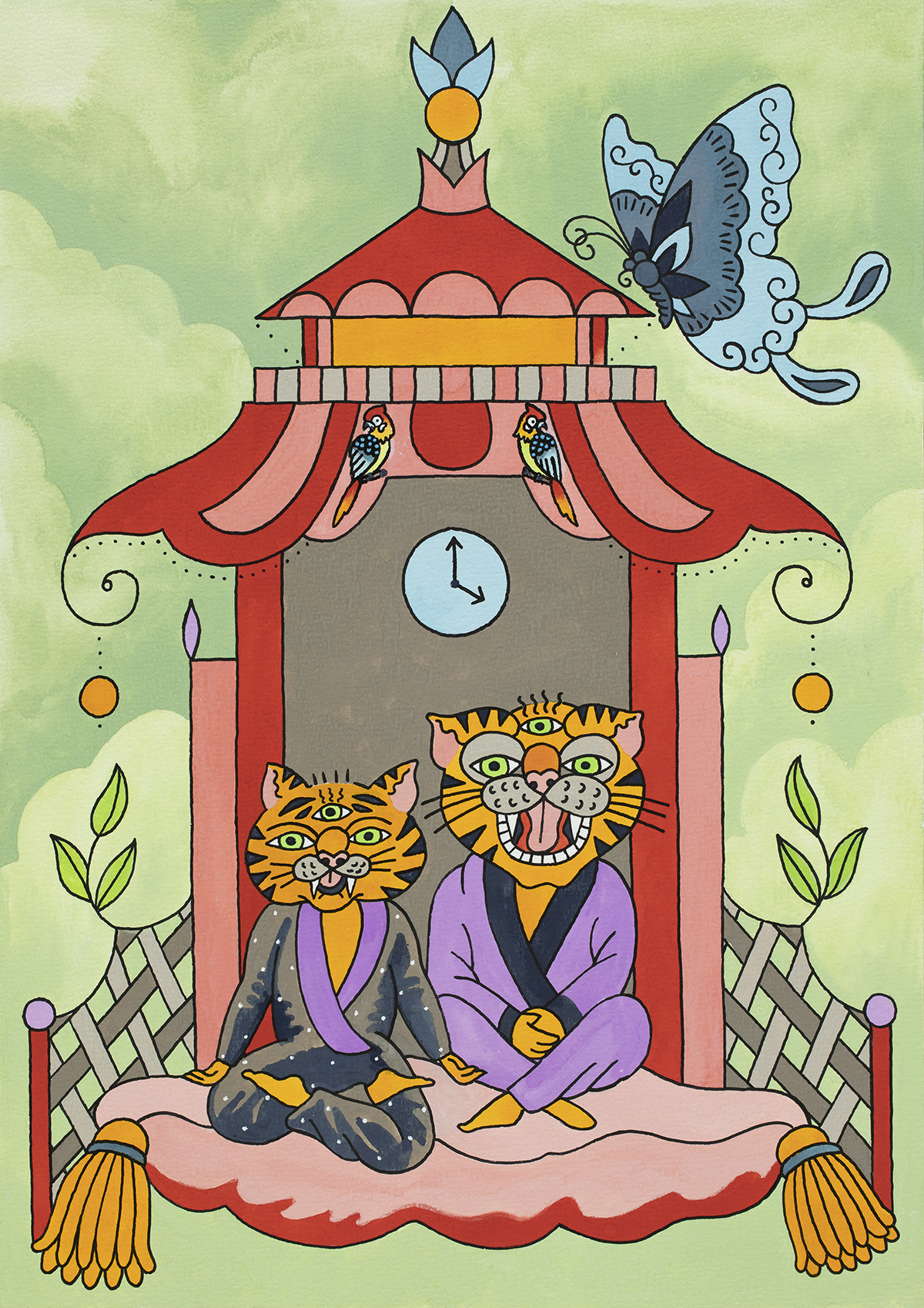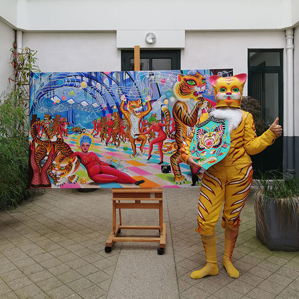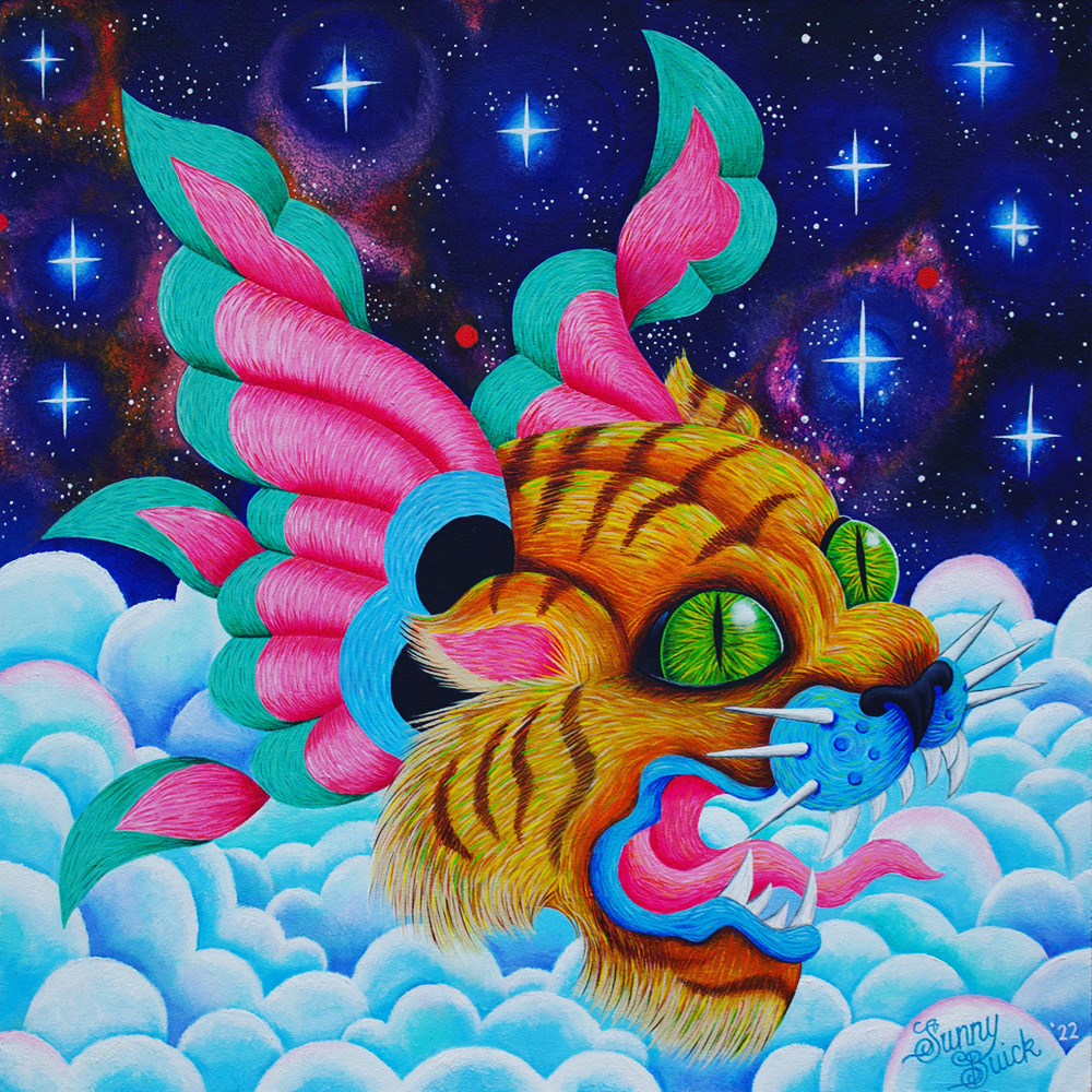 The allure of Fauves and Felines has always been a prominent theme in my work, but recently, it has evolved into a consuming obsession. From depictions of cat women engaged in fierce battles, to hybrid creatures blending kittens or tigers with butterfly wings, my paintings explore the untamed nature of wild cats and the primal energy they embody. Whether it’s the majestic tiger or the mysterious black panther, these creatures symbolize power, independence, and a sense of primal ferocity.
