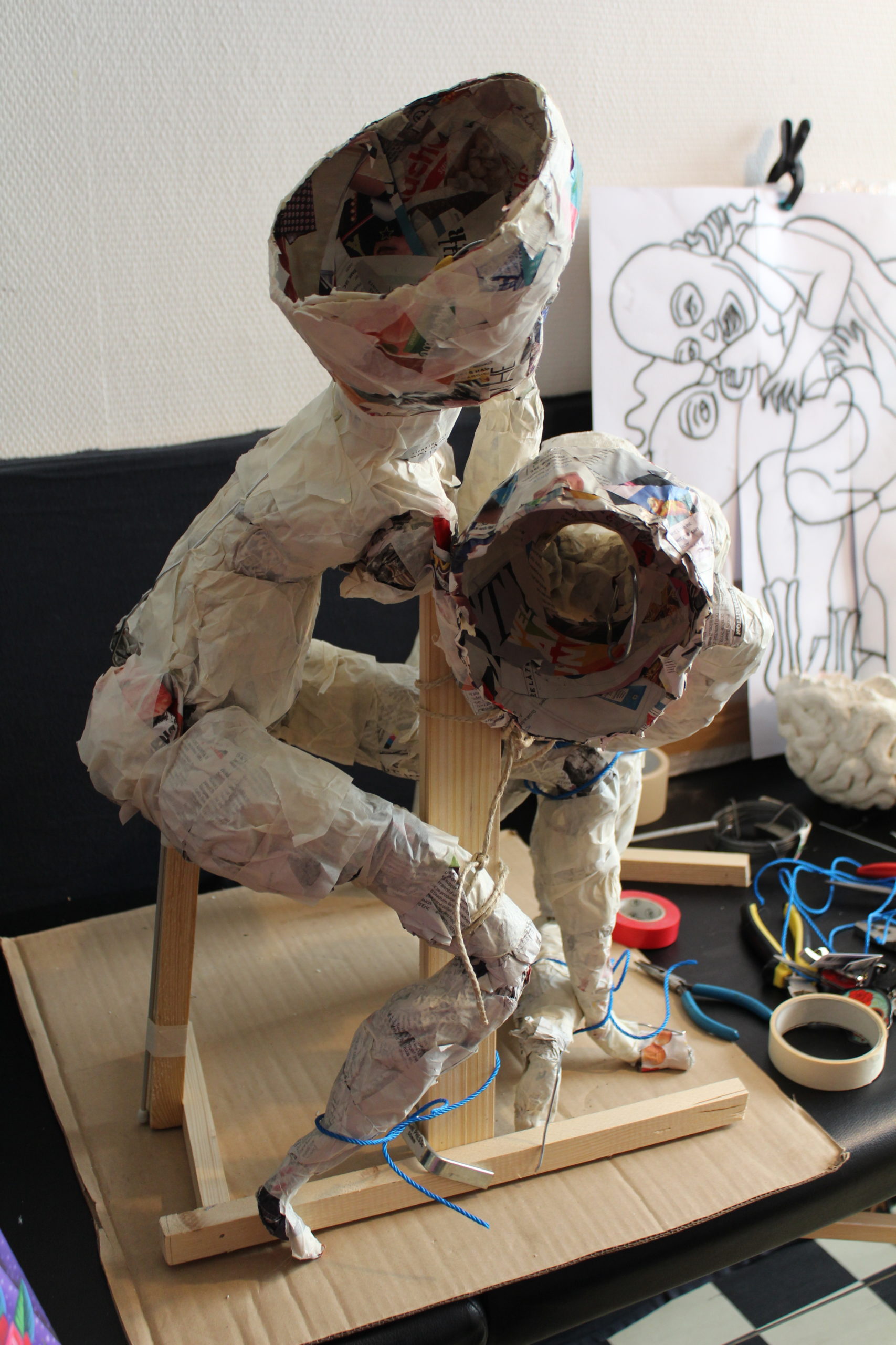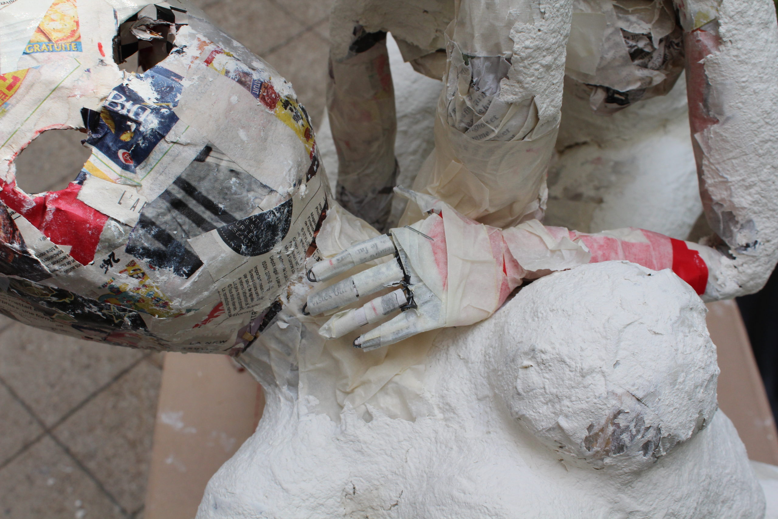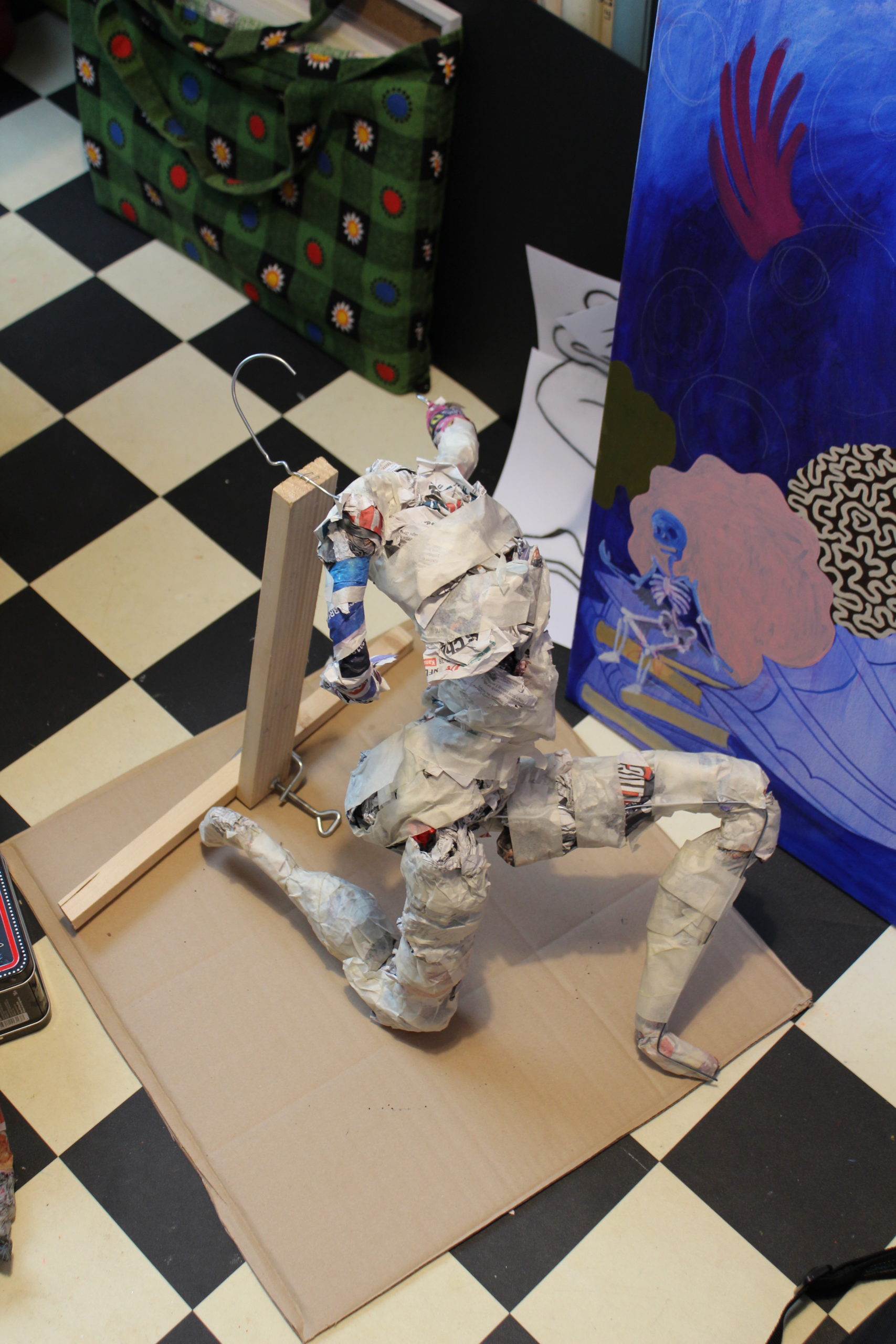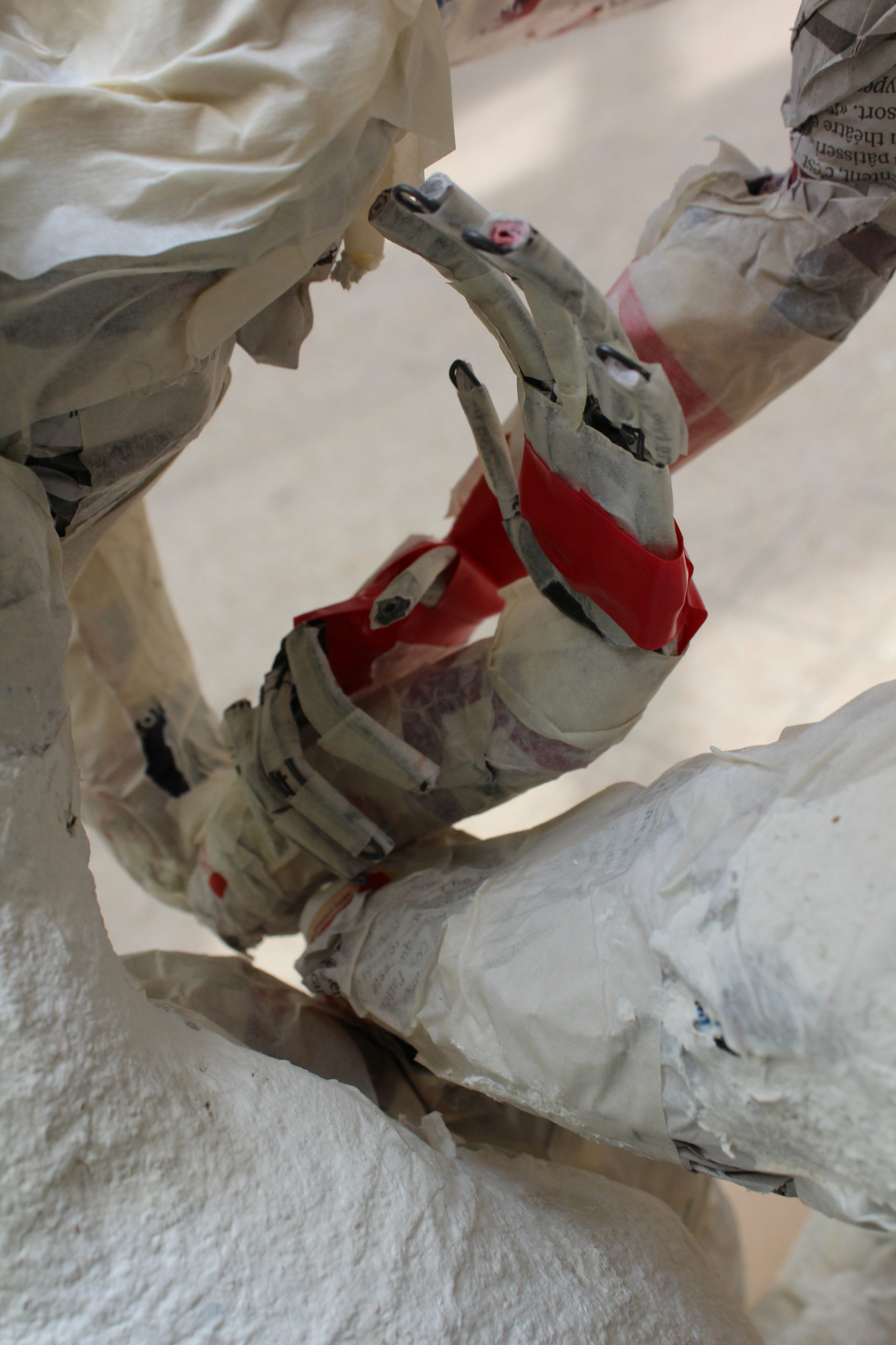 The hands were made from wire and tape before being covered in papier-mâché. As I added layers to the bodies, I took photos to assess where additional shaping was needed.