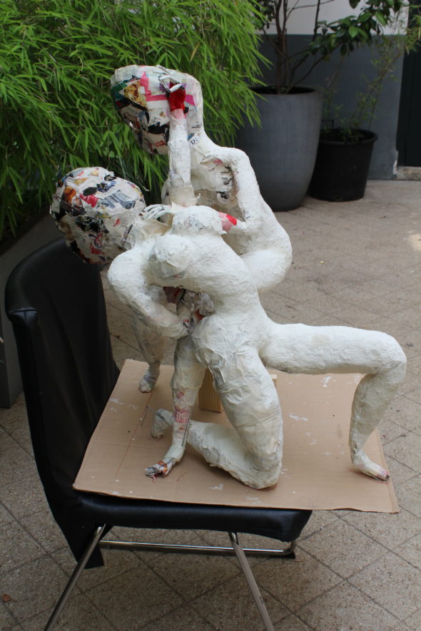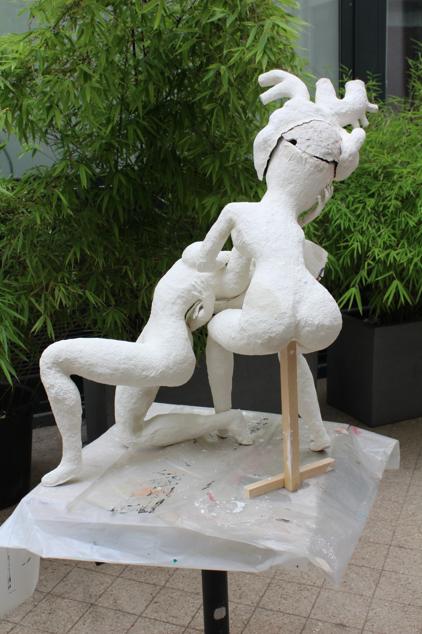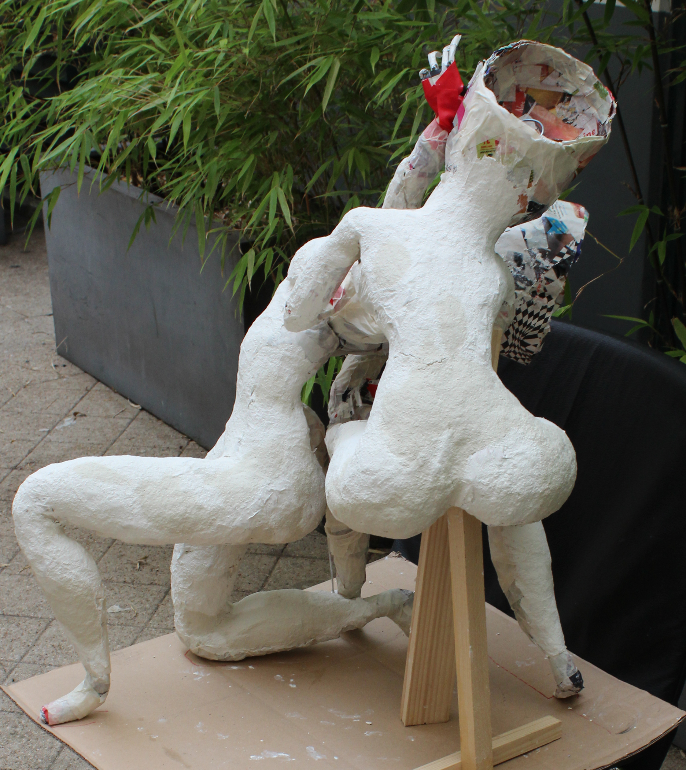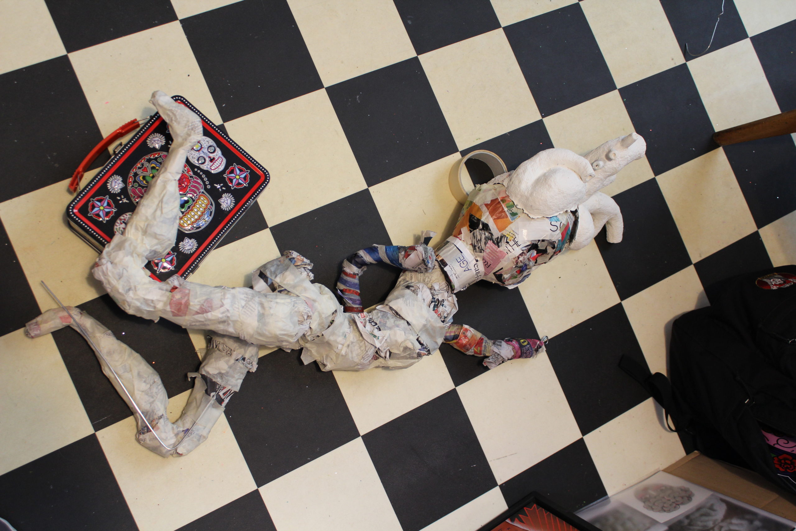 The hands were made from wire and tape before being covered in papier-mâché. As I added layers to the bodies, I took photos to assess where additional shaping was needed.