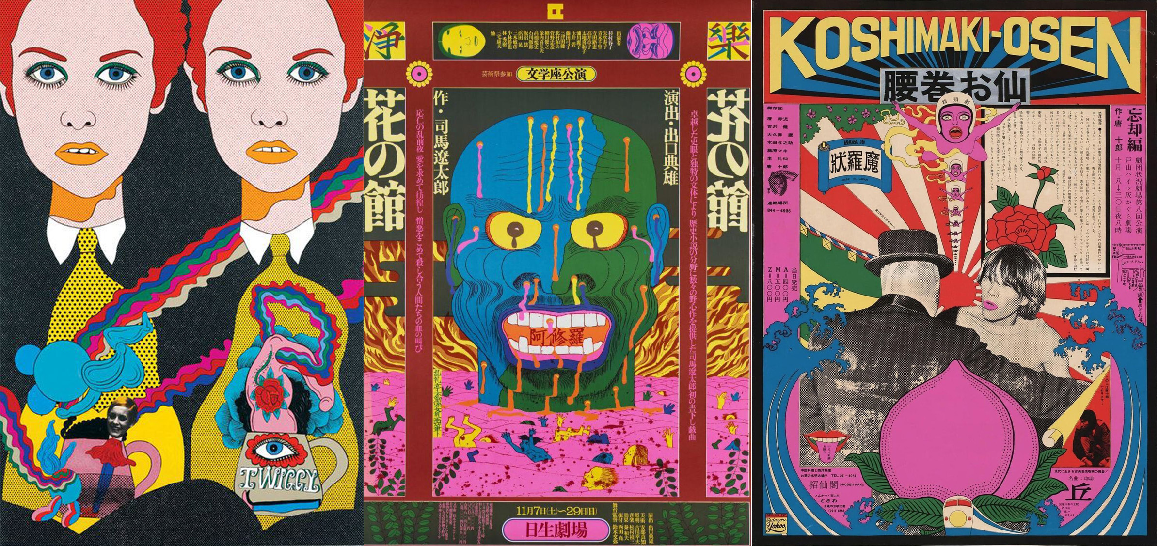 The graphic design explosion in Japan during the 1960s produced a distinctive visual style that blended Western pop art with traditional Japanese imagery. Because many designers were working with similar visual codes, it can sometimes be difficult to tell their work apart.